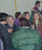 Im Zelt drängten sich die Menschen, es waren weit über 200 Leute. Einige mußten sogar vor dem Eingang stehen. |